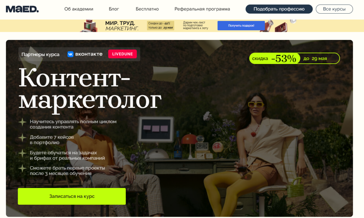 Контент-маркетолог от MAED— отличное повышение квалификации.