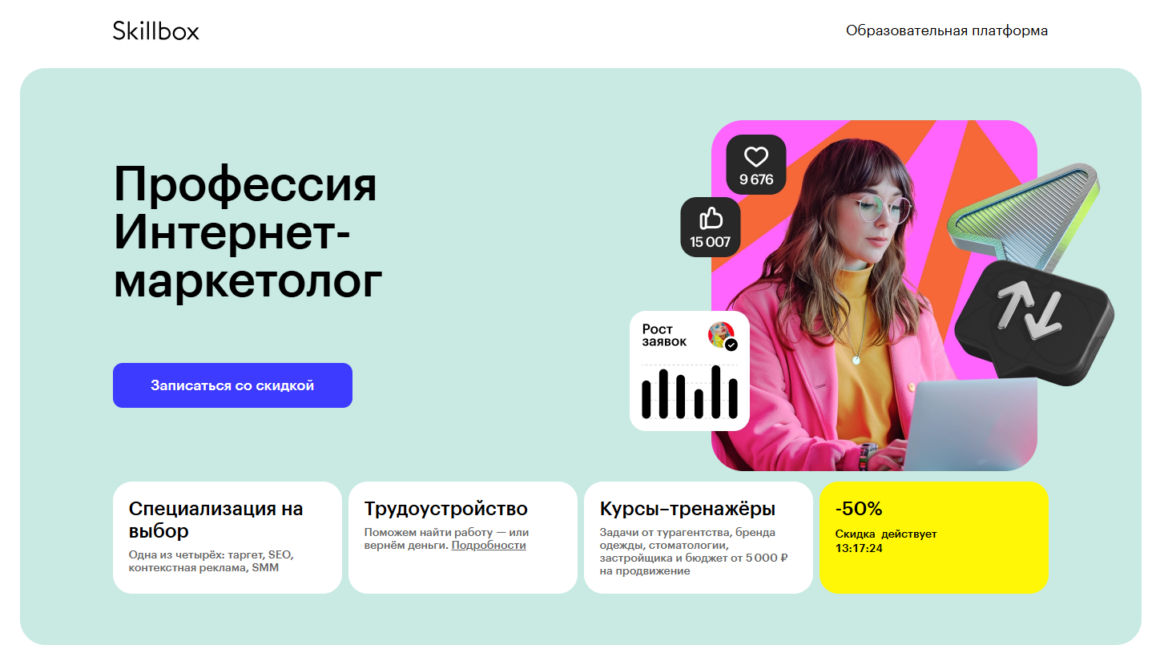 Интернет-маркетолог от Skillbox — лучший курс с отработкой практики на тренажерах.