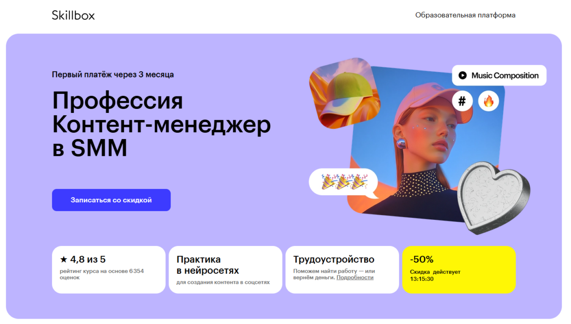 Контент-менеджер в SMM от Skillbox — лучшее обучение на контент-менеджера с практикой в нейросетях.