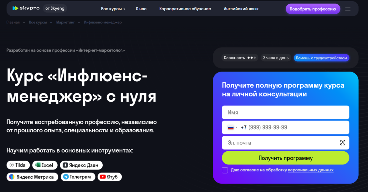Инфлюенс-менеджер от Skypo — лучший курс для инфлюенс-менеджеров с помощью в трудоустройстве.