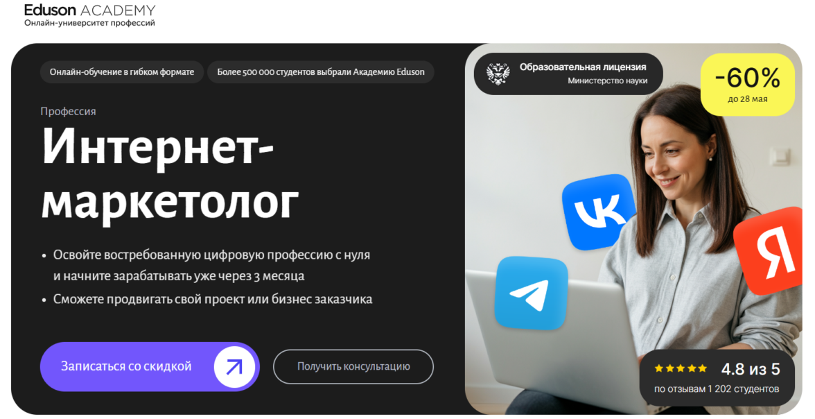 Интернет-маркетолог от Eduson Academy — отличное обучение для владельцев бизнеса.
