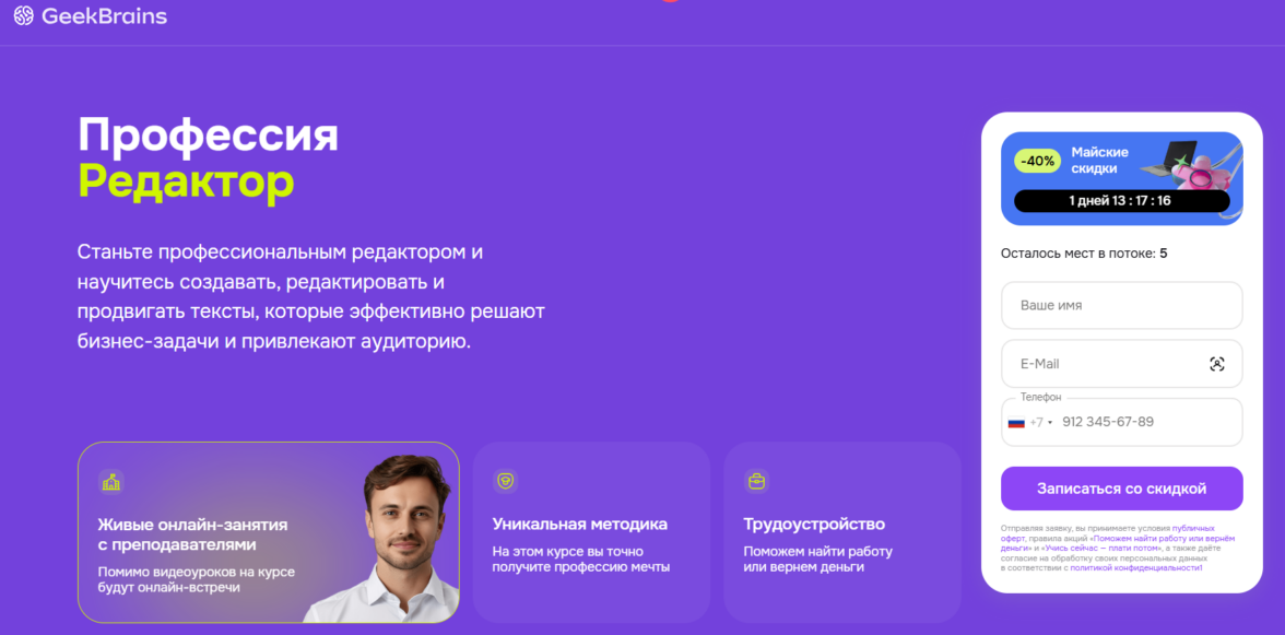 Редактор от GeekBrains— обучение на редактора с живыми онлайн-занятиями.