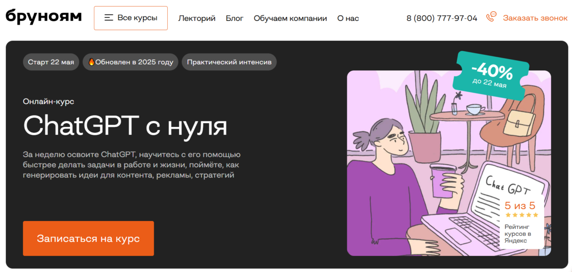 • полностью бесплатный онлайн-формат обучения ChatGPT с нуля;