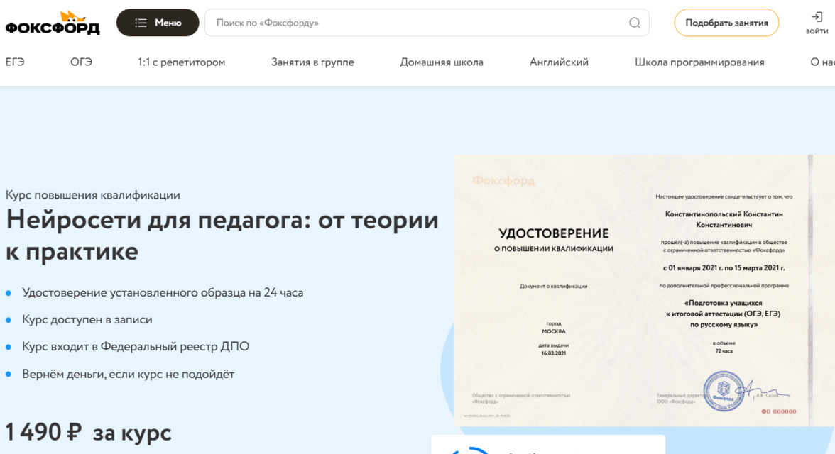 10. Нейросети для педагога от Фоксфорда — обучение педагогов использованию AI-технологий для повышения эффективности образования.