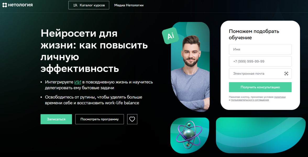 3. Нейросети для жизни от Нетологии — курс о применении нейросетей для повседневных задач и личного развития.