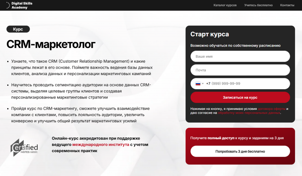 CRM-маркетолог от Digital Skills Academy — результативное обучение с вниманием к потребностям каждого студента.