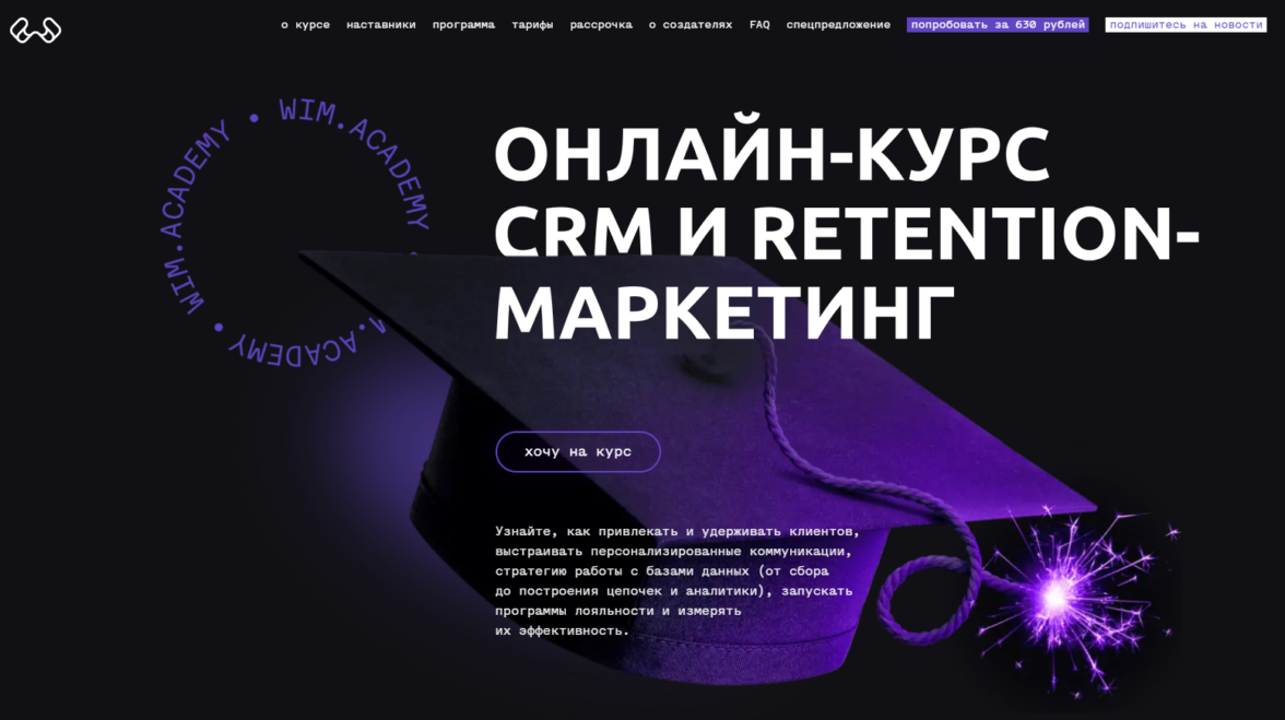 CRM и retention-маркетинг от WIM.Agency — разные тарифы и возможности оплаты обучения.