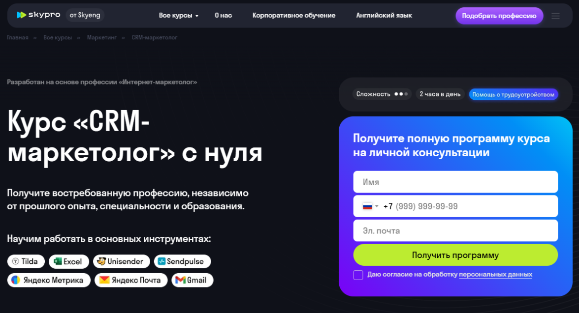 1. Курс «CRM-маркетолог» с нуля | Skypro.