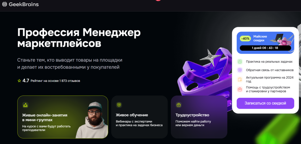 Менеджер маркетплейсов от GeekBrains — лучшее обучение в мини-группах для будущих бизнесменов.