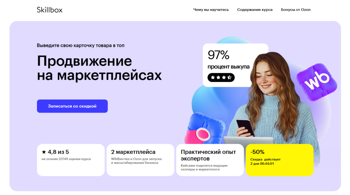 Специалист по продвижению на маркетплейсах от Skillbox — лучший курс для начинающих маркетологов.