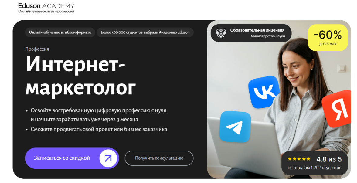 Интернет-маркетолог от Eduson Academy — отличное обучение для владельцев бизнеса.