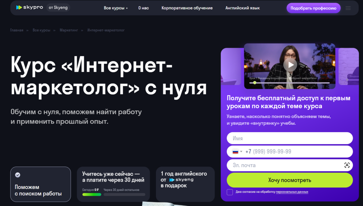 Интернет-маркетолог от Skypro — лучшее обучение с нуля с помощью в поиске работы.
