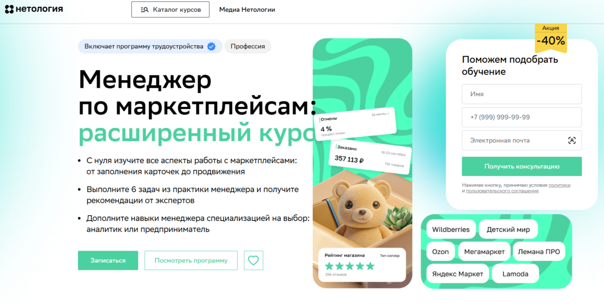 Менеджер по маркетплейсам от Нетологии — отличное повышение квалификации.