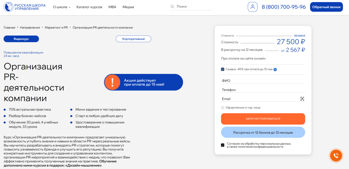 три направления обучения на выбор — продуктовый PR, корпоративный PR или 2в1;