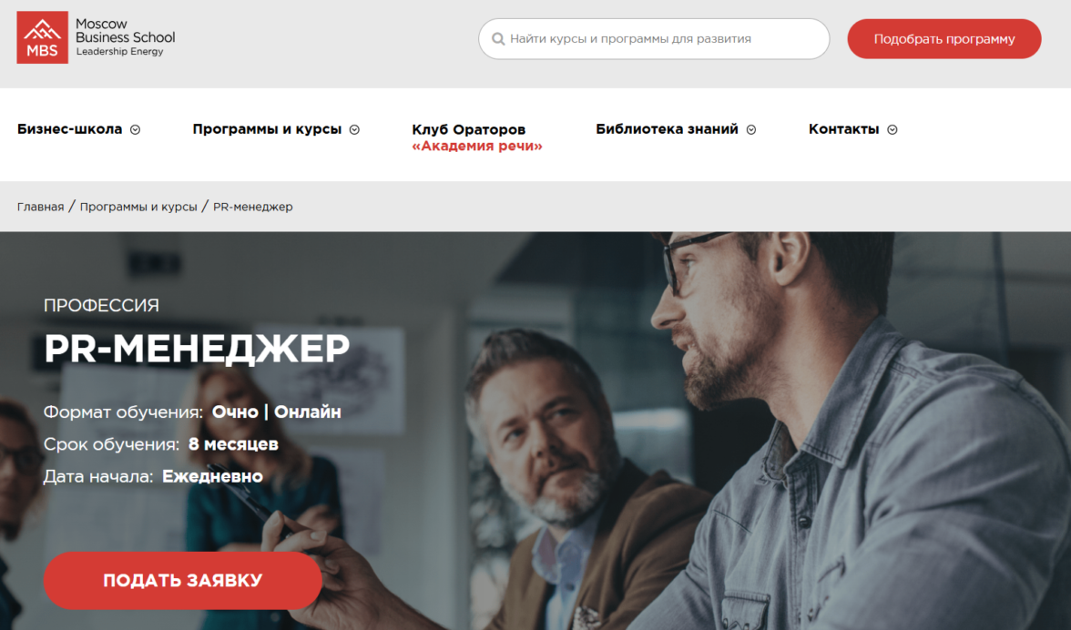 PR-менеджер от MBS: Moscow Business School — большое количество бизнес-кейсов из сферы маркетинга, менеджмента и связей с общественностью.