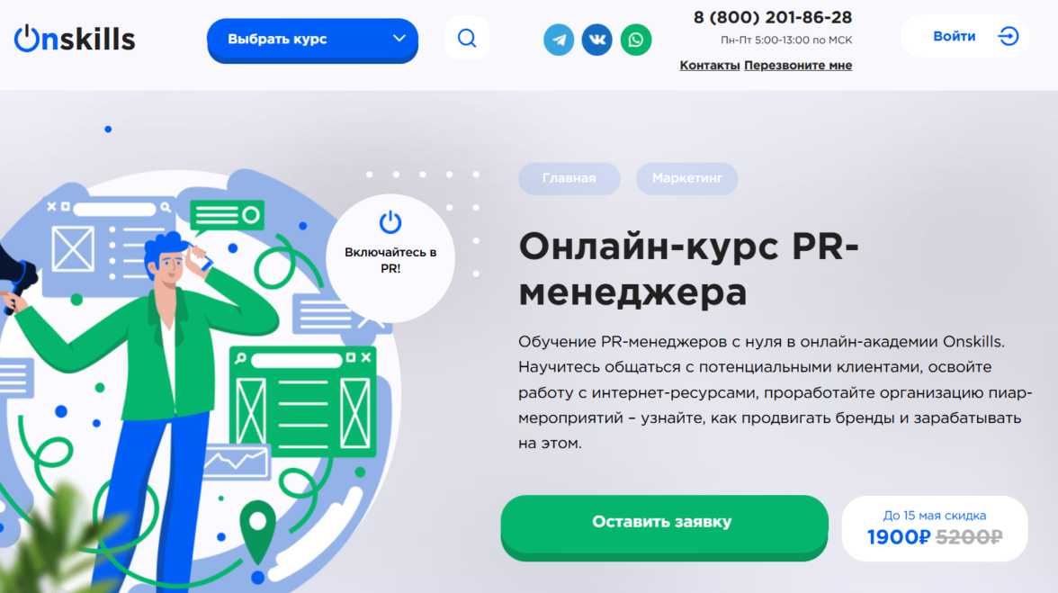 Онлайн-курс PR-менеджера от Onskills.ru — усиленная тренировка hard- и soft-skills PR-менеджера.