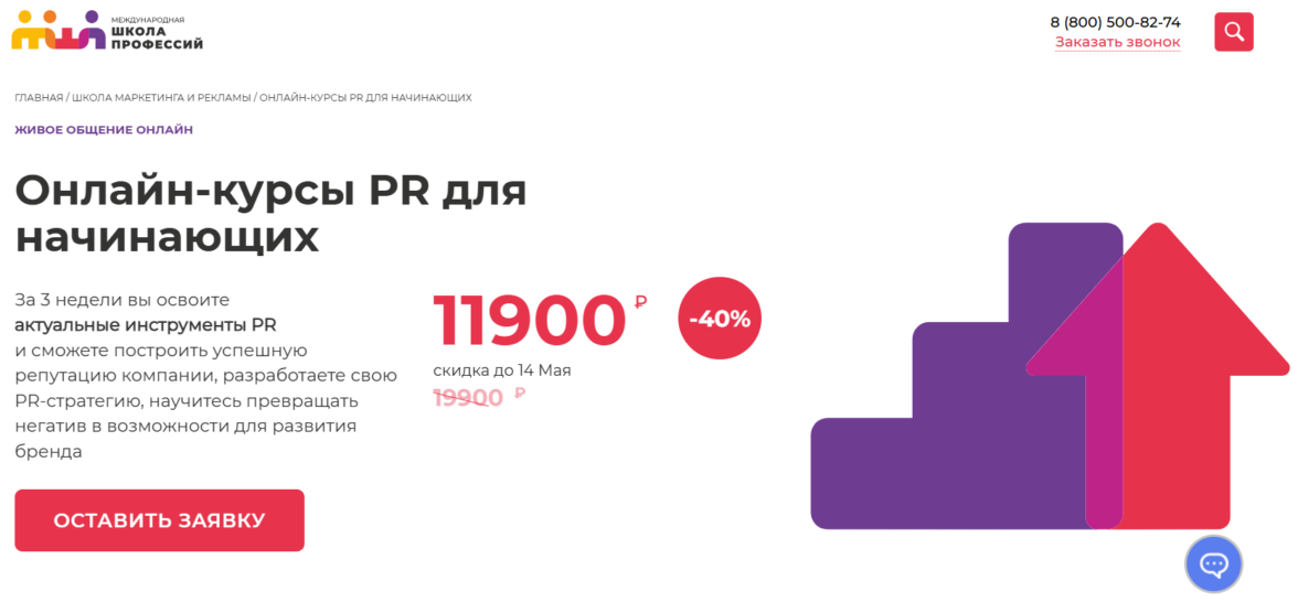 Онлайн-курсы PR для начинающих от Международной школы профессий — знакомство с популярными инструментами репутационного и digital PR-менеджмента.