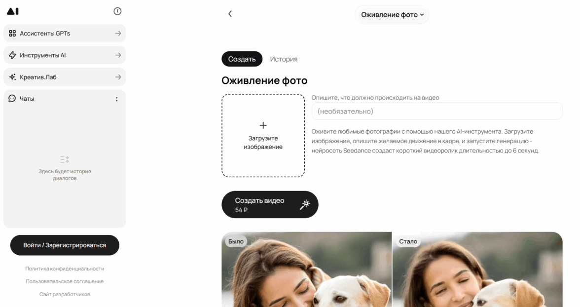 GPTunneL — это комплексный AI-хаб, где ключевым инструментом выступает нейросеть LivePhotos для оживления фотографий. Сервис интегрирует в себе множество модулей, что позволяет не просто анимировать изображения, а полноценно управлять сценами через текст, создавая синхронизированный аудиовизуальный контент для самых разных целей непосредственно в рамках одной платформы.