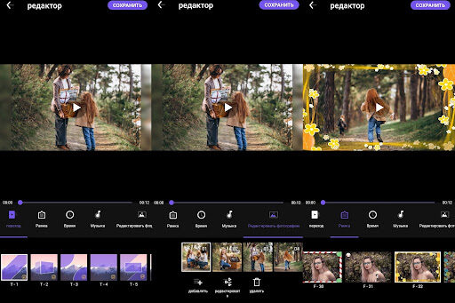 Приложение для создания видео из фотографий с музыкой подойдет для монтажа поздравительной открытки, коротких роликов для соцсетей. В программе можно добавить текстовое сопровождение, сделать эффектный переход от кадра к кадру. Есть функция поделиться готовым проектом в мессенджере или соцсетях.
