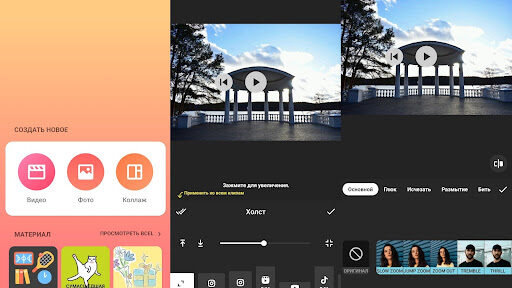 Простой в использовании редактор для создания коротких клипов из фото. Содержит модуль для улучшения качества картинок, а для монтажа не потребуются дополнительные сервисы. В InShot можно сделать запоминающееся слайд-шоу из личных снимков, собрать разноформатный контент для таких площадок, как YouTube, ВКонтакте, ТикТок, WhatsApp, Snapchat.