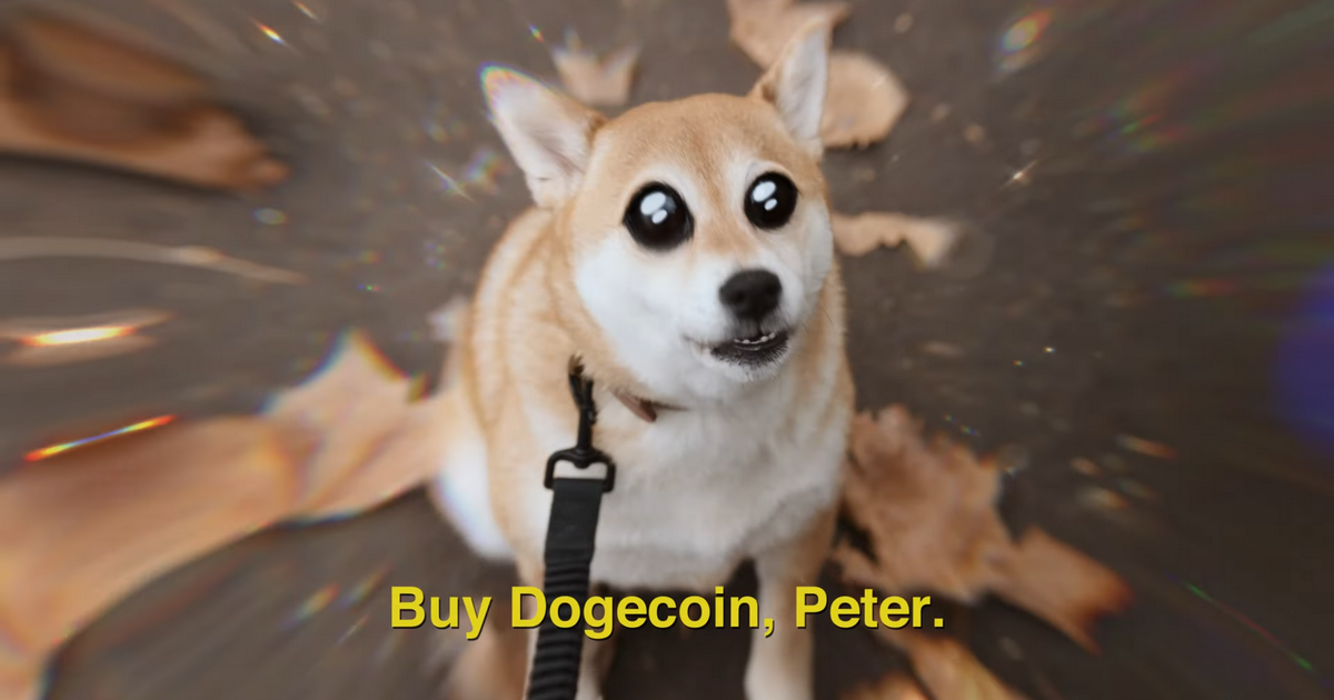 • Питер гуляет с собакой сиба-ину, которая является символом криптовалюты Dogecoin, сокращенно Doge;