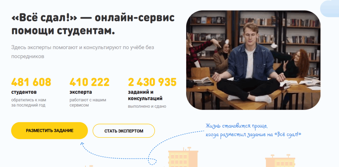 Это онлайн-сервис образовательной помощи студентам. По сути это биржа студенческих работ. После формирования заявки она отправляется на аукцион для грамотного подбора эксперта. На окончательный выбор влияют детали задания и необходимые компетенции потенциального автора. Для старта потребуется предоплата 50 %, есть возможность внести сразу полную сумму.