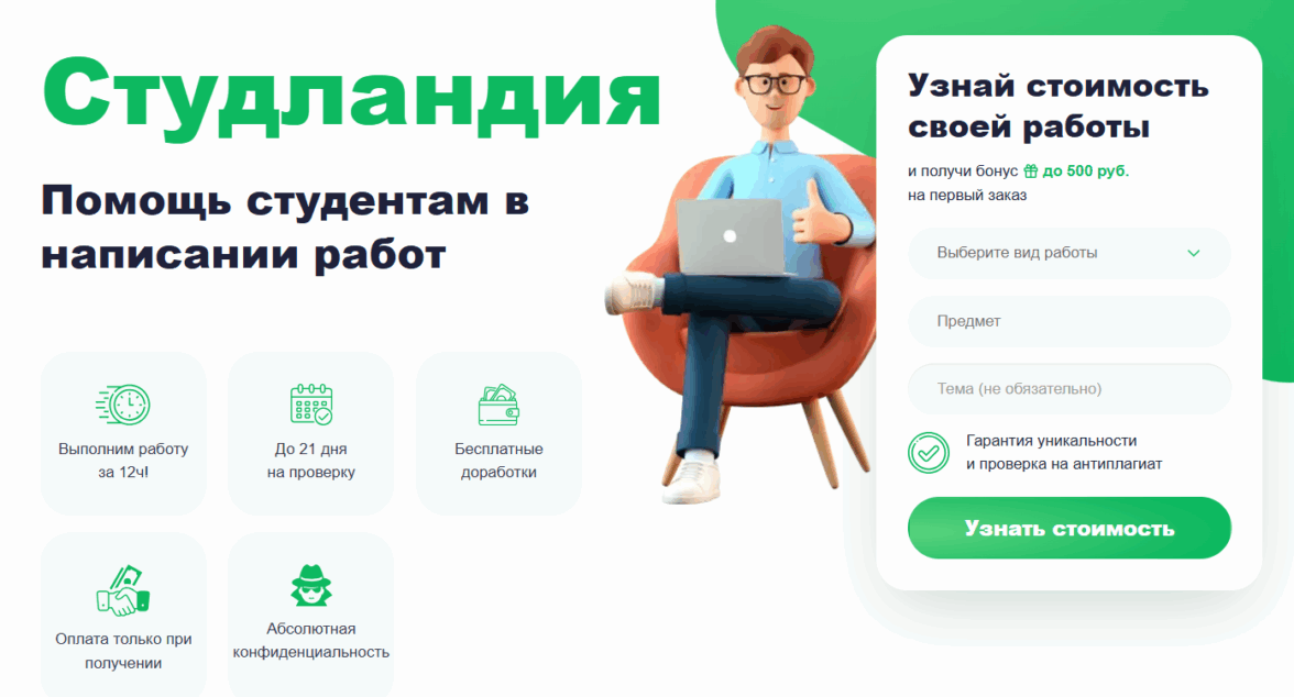 Студландия — онлайн-платформа для написания всех видов студенческих работ под ключ.