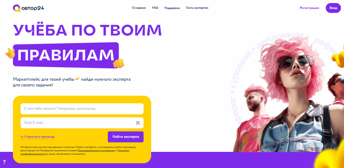 Автор24 — многофункциональная площадка с самостоятельным выбором эксперта и отсутствием регистрации.