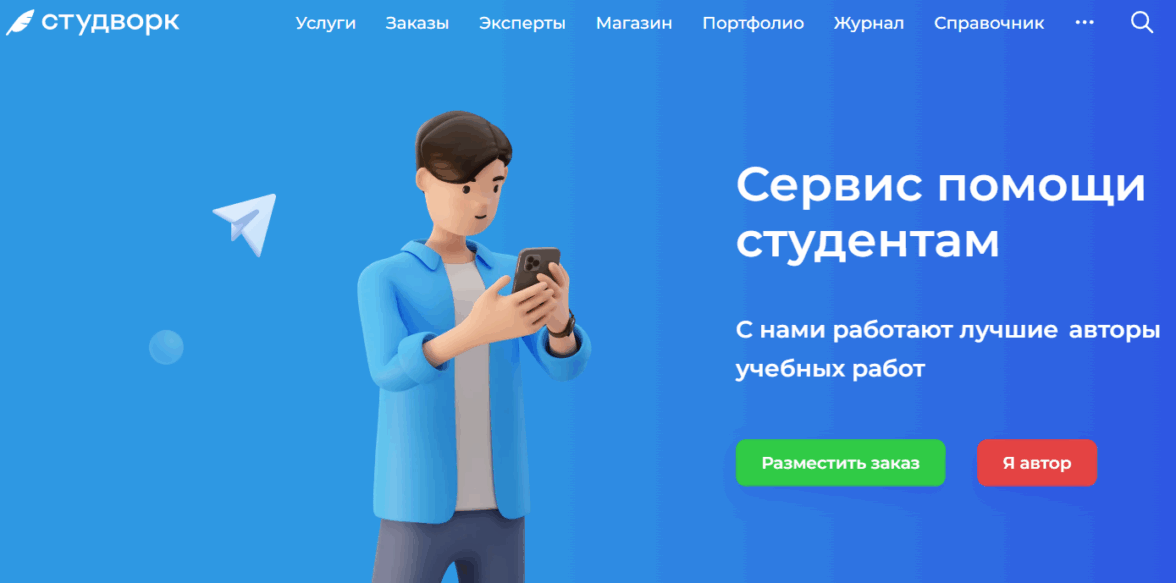 СтудСервис — онлайн-площадка, функционирующая более 21 года. У каждого клиента есть персональный менеджер, способный утрясти все организационные моменты. Доступен бонус 300 рублей на первый заказ.