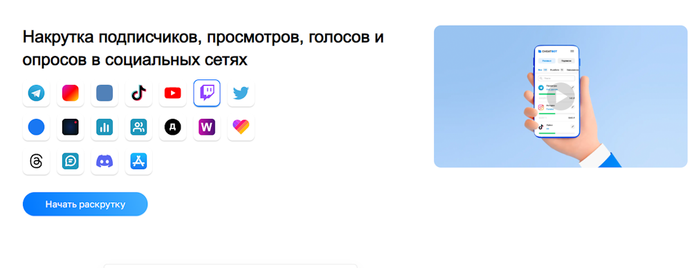 накрутка подписчиков в сообществах, зрителей на стримы, просмотров и лайков на контенте и др. — для большинства существующих соцсетей и онлайн-платформ;