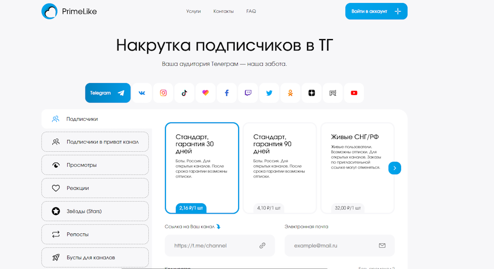 • доступно продвижение профиля через рост реакций, просмотров, лайков, комментариев и эмоций.