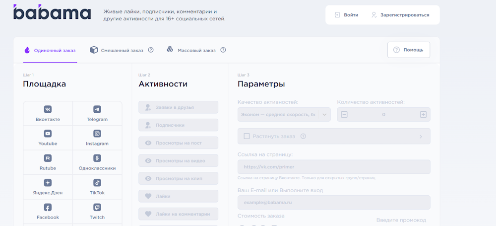 6. Babama — максимально эффективное продвижение с «живыми» подписчиками и комментариями, а также прочими видами активности.