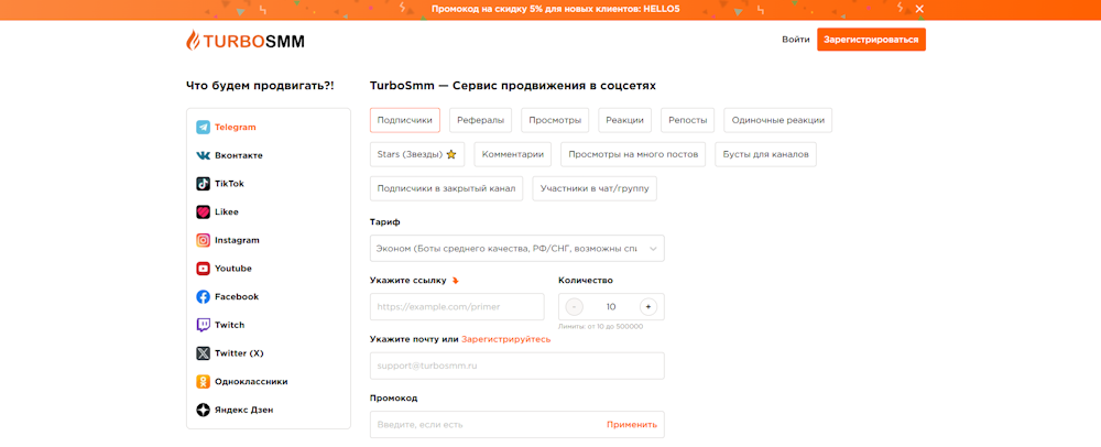 7. TurboSMM — для накрутки не только в Твич, но и остальных популярных соцсетях, с выгодными ценами и оперативной работой техподдержки.