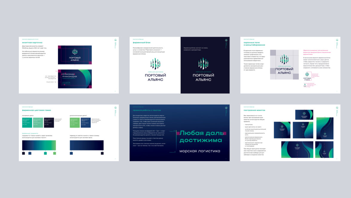 Как и в большинстве «стратегических» проектов, этот завершился созданием не просто гида по стилю, а всестороннего брендбука. В нем мы закрепили сущностные основы и атрибуты бренда «Портового альянса» — и элементы его айдентики с необходимыми правилами использования.