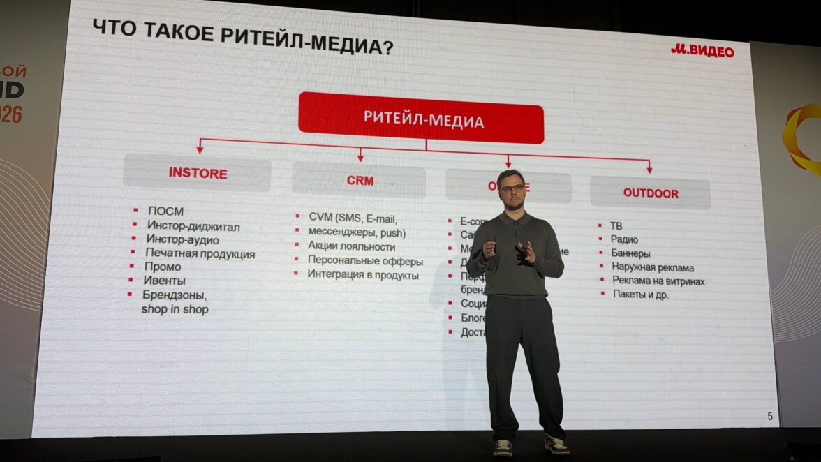 ПАО «М.видео» в рамках очередного шага развития своего мультикатегорийного маркетплейса объявляет о планах по созданию собственной омниканальной платформы ритейл-медиа – экосистемы рекламных инструментов, объединяющей онлайн-площадки, офлайн-магазины, CRM-коммуникации и медийные форматы. Об этом на сессии «Архитектура и эффективность рекламных систем» на конференции «Цифровой Brand Day 2026» сообщил директор по маркетингу Компании М.Видео Андрей Скачек. Ожидается, что инструменты площадки будут доступны как крупным брендам, так и селлерам.