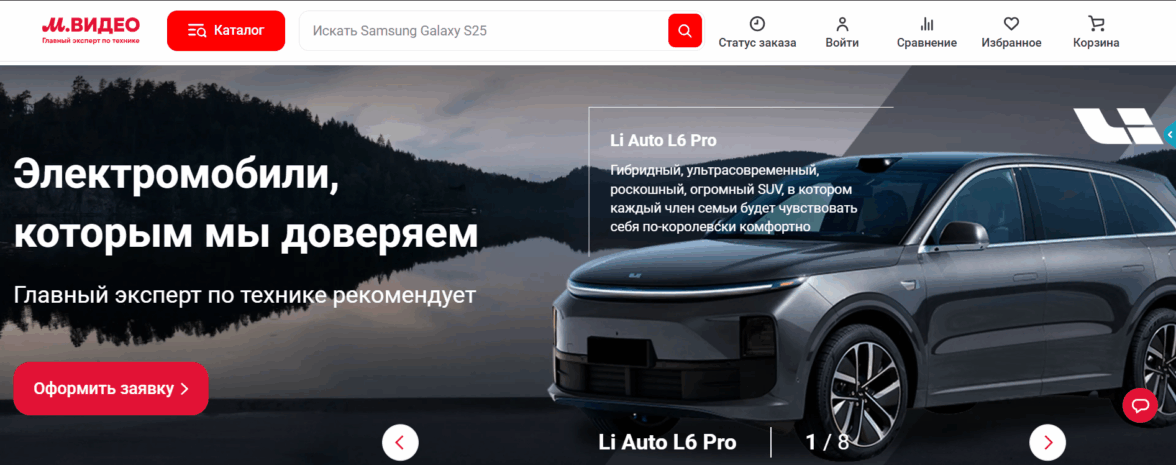 ПАО «М.видео» в рамках развития собственного маркетплейса сообщает о старте пилотного проекта по продаже электромобилей и зарядной инфраструктуры на сайте и мобильном приложении М.Видео, открывая для клиентов новый сегмент экологичного транспорта. Проект реализуется в партнерстве с ведущим автомобильным дилером АГ «Авилон» и компанией PUNKT E, предлагающей решения для зарядки электротранспорта. Клиенты могут заказать не только доставку, но и установку зарядных станций.