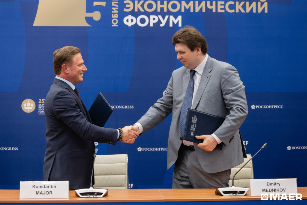 На Петербургском международном экономическом форуме (ПМЭФ) Maer и «Русская Медиагруппа» (РМГ) заключили соглашение о сотрудничестве. Документ подписали управляющий директор РМГ Дмитрий Медников и владелец медиахолдинга MAER Константин Майор.