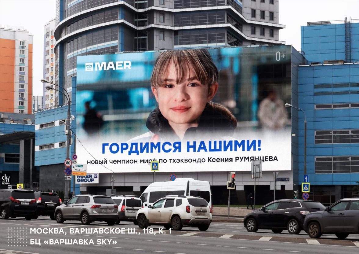 Что было дальше, вы уже знаете. Но вот чего никто не ожидал, так это то, как Константин Майор представил нового чемпиона мира в России. Буквально на следующий день после приезда домой о победе Ксении рассказали медиафасады MAER от Сочи и Новосибирска до Москвы и Волгограда.