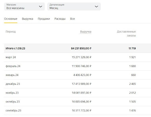 В июле 2023 года магазин отправил 652 заказа покупателям, а в ноябре 2023 года — 2012 заказов. Это значит, что рост продаж составил почти 200%. Выручка при этом выросла в два раза — с 4,3 млн в июле до 14 млн в ноябре 2023 года.