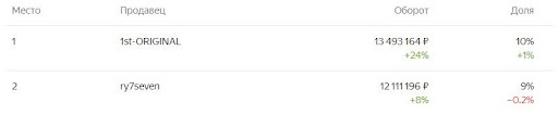 Благодаря верному ранжированию, увеличению охватов и продвижению за период с июля по ноябрь 2023 года товары 1st-original заняли первое место в своей категории.