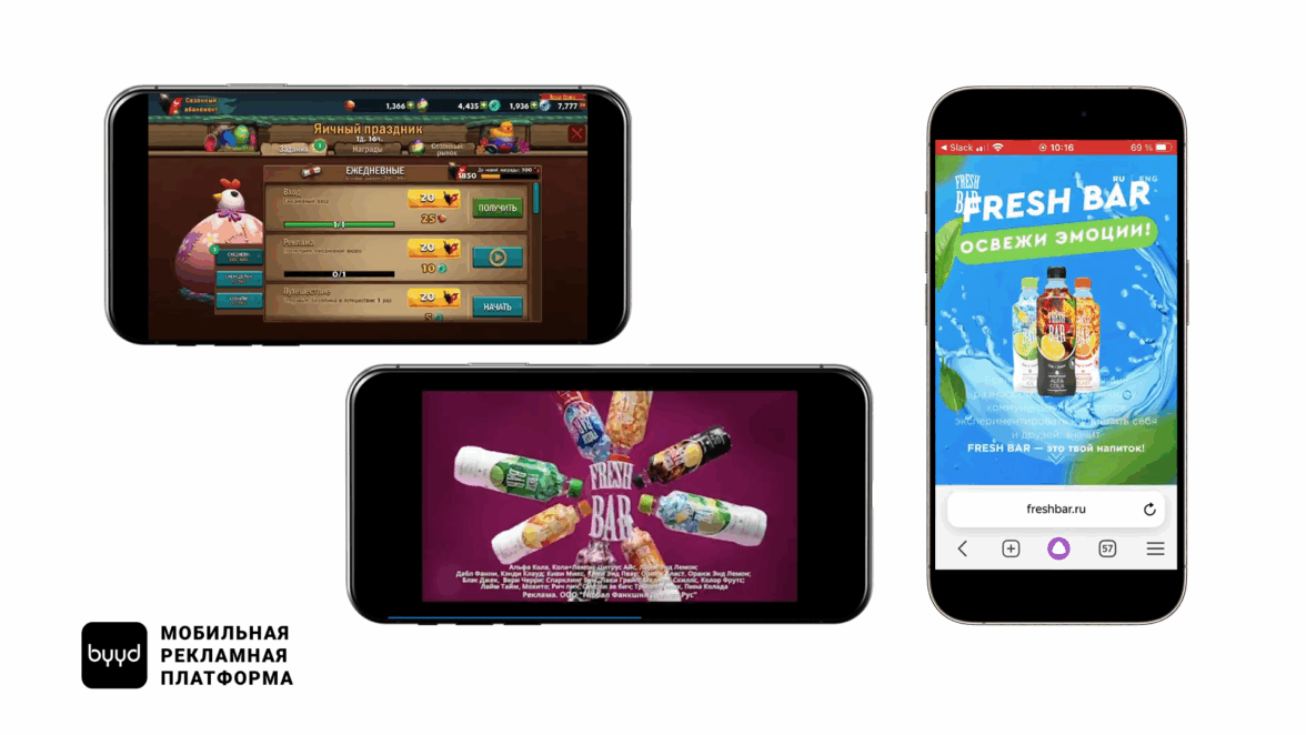 Команда BYYD уже более 11 лет работает с мобильной рекламой и создает решения, ориентированные на реальное вовлечение аудитории. Мы помогаем брендам эффективно привлекать внимание пользователей и достигать маркетинговых целей с помощью проверенных механик и продуманной креативной стратегии.