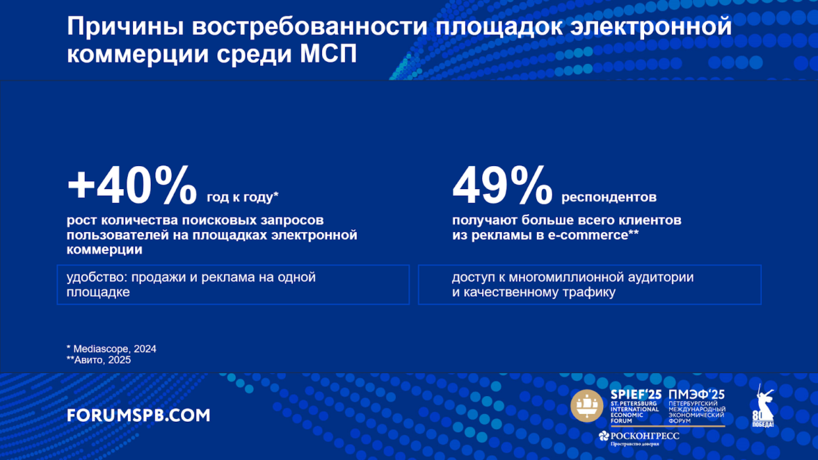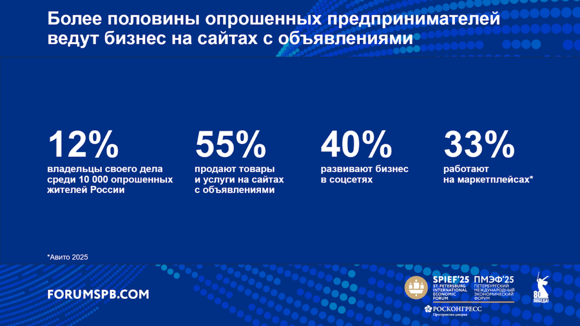 По данным опроса Авито Рекламы, среди 10 000 респондентов 12% являются владельцами МСП. Среди них 55% продают товары и услуги на сайтах с объявлениями, 40% развивают свой бизнес в социальных сетях и 33% работают на маркетплейсах. Очевидно, что площадки электронной коммерции занимают важную часть среди малого и среднего бизнеса.