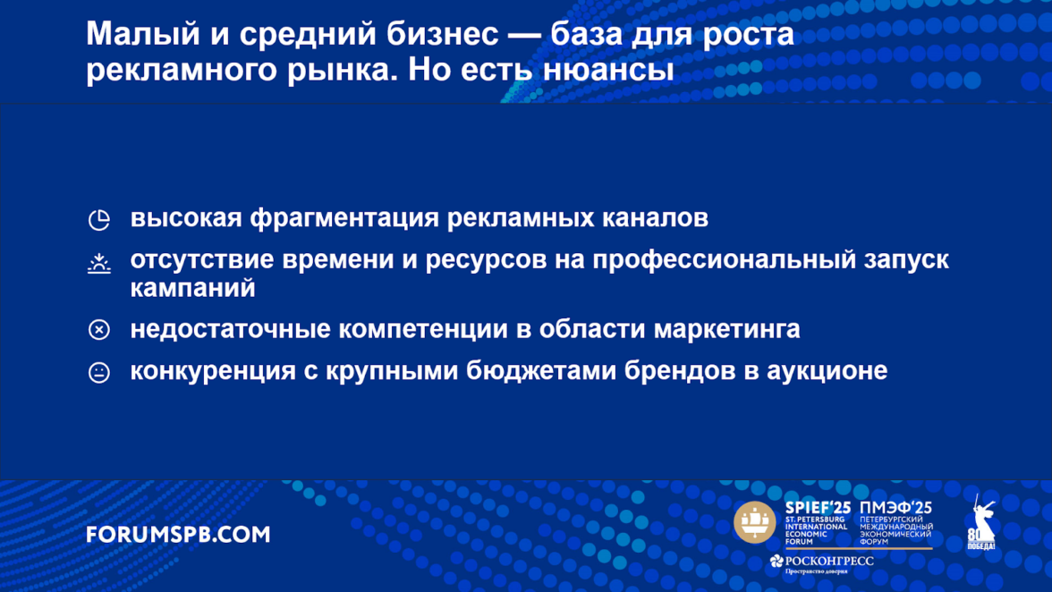 Если малый и средний бизнес вносит большой вклад в экономику страны, логично, что такой же вклад он вносит в сферу рекламы. Особенно это заметно в последнее время, когда количество новых отечественных брендов растет в связи с уходом западных: у них появилась возможность занять эту нишу и работать в ней. С другой стороны, ушли и западные рекламные площадки, которыми можно было пользоваться раньше. Вместе с тем важно учесть, что представителям малого и среднего бизнеса всегда было достаточно непросто управлять своим медиамиксом по ряду причин, среди которых отсутствие в штате профильных специалистов, высокая фрагментация каналов, а также серьезная конкуренция с крупными брендами.