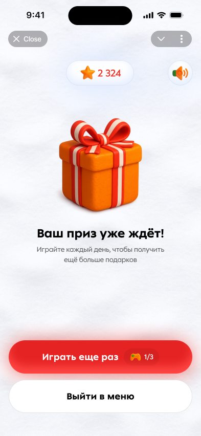 Чем больше новых друзей приведёт пользователь, тем больше у него попыток добыть главный приз. Таким образом, помимо вовлечения — игра становится виральным инструментом по привлечению новых юзеров и подписчиков.