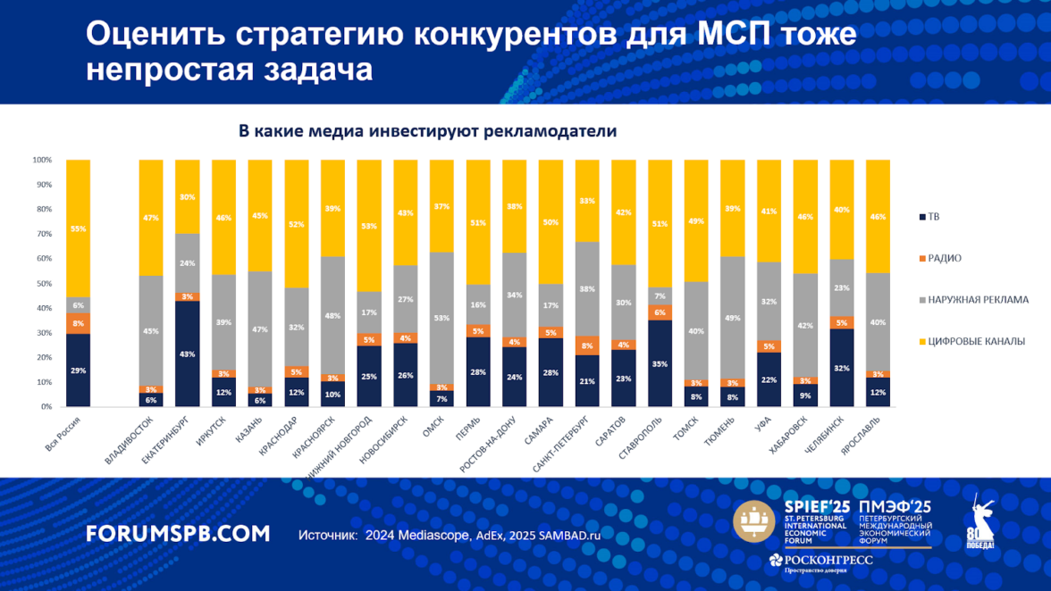 Однако даже в таких ограниченных условиях бизнесу все равно приходится принимать решение — какие каналы коммуникации выбирать, чтобы расширить свое присутствие в том или ином регионе. На уровне города ситуация становится еще сложнее: даже внутри одного канала могут быть значительные различия. Вопрос особенно остро стоит из-за необходимости оптимизировать ограниченный, «нерастяжимый» бюджет, которым располагает малый и средний бизнес.