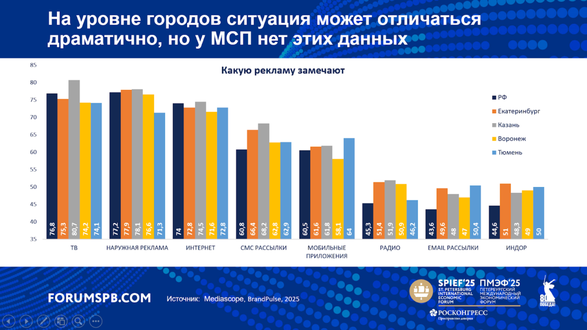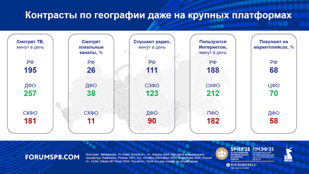 При одинаковом бюджете результат может быть принципиально разным — поэтому критически важно не просто иметь доступ к данным, но и уметь правильно с ними работать. Публичной информации по федеральному уровню бывает недостаточно, ведь медиапотребление сильно различается по регионам и городам: люди доверяют разным каналам, используют разные платформы, а значит — медиасплит тоже должен быть адаптирован под эти различия.