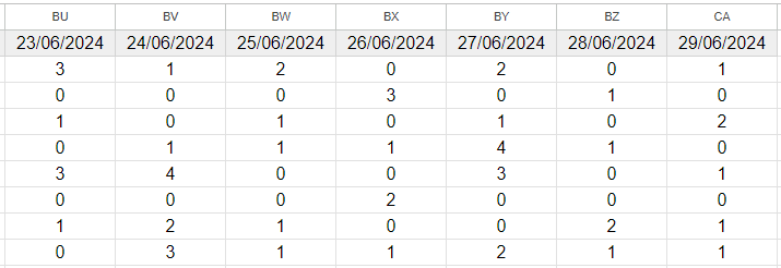 Собранные данные автоматически сохраняются в Google Sheets. Каждый день бот создает новую запись с актуальной датой и заполняет соответствующие столбцы данными от сотрудников. Это позволяет легко отслеживать и анализировать производительность каждого сотрудника и всей команды в целом.