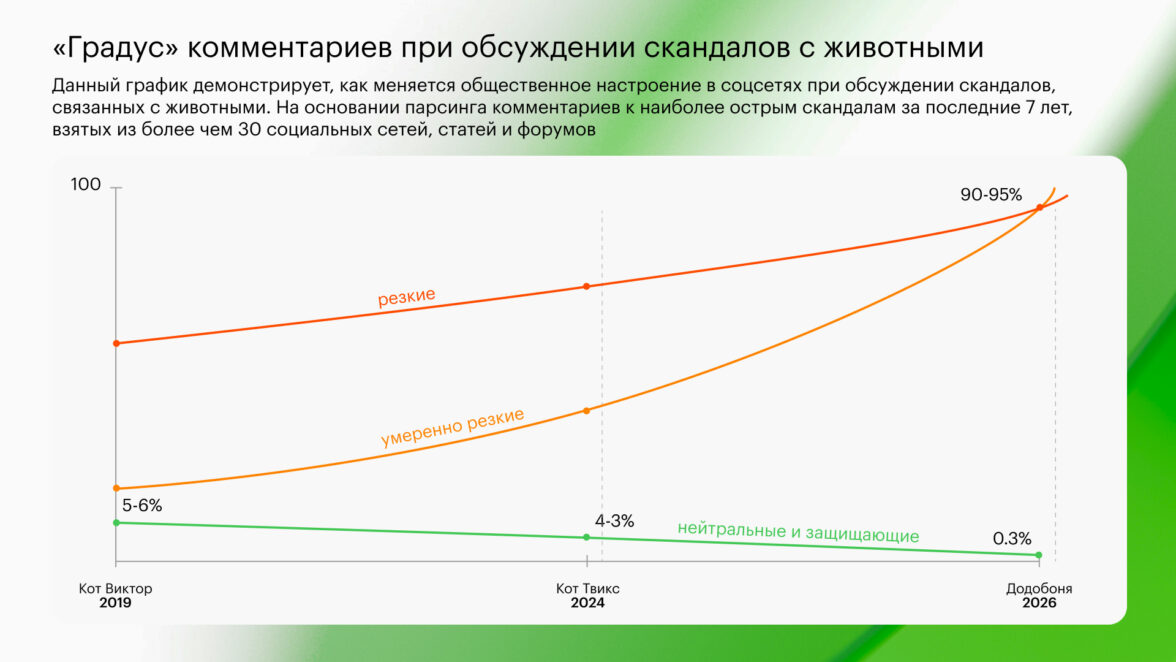 «Пет»-повестка стала зоной высокого риска для брендов в HoReCa и FMCG: за последние годы в России несколько громких скандалов, связанных с животными, получали федеральную огласку и приводили к реальным последствиям — увольнениям, пересборке внутренних правил компаний, изменениям в публичной позиции и сдвигам в общественной норме. Один из самых заметных кейсов — «Додо Пицца».