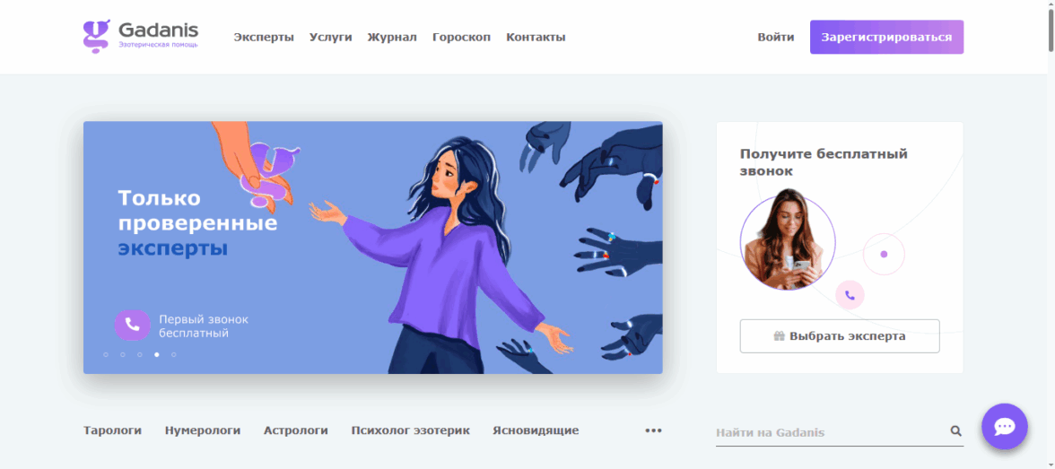 Gadanis — Получите бесплатный звонок! Переходите, чтобы выбрать лучшего эксперта!Удобное мобильное приложение, push-напоминания, фильтр по дару и стажу.