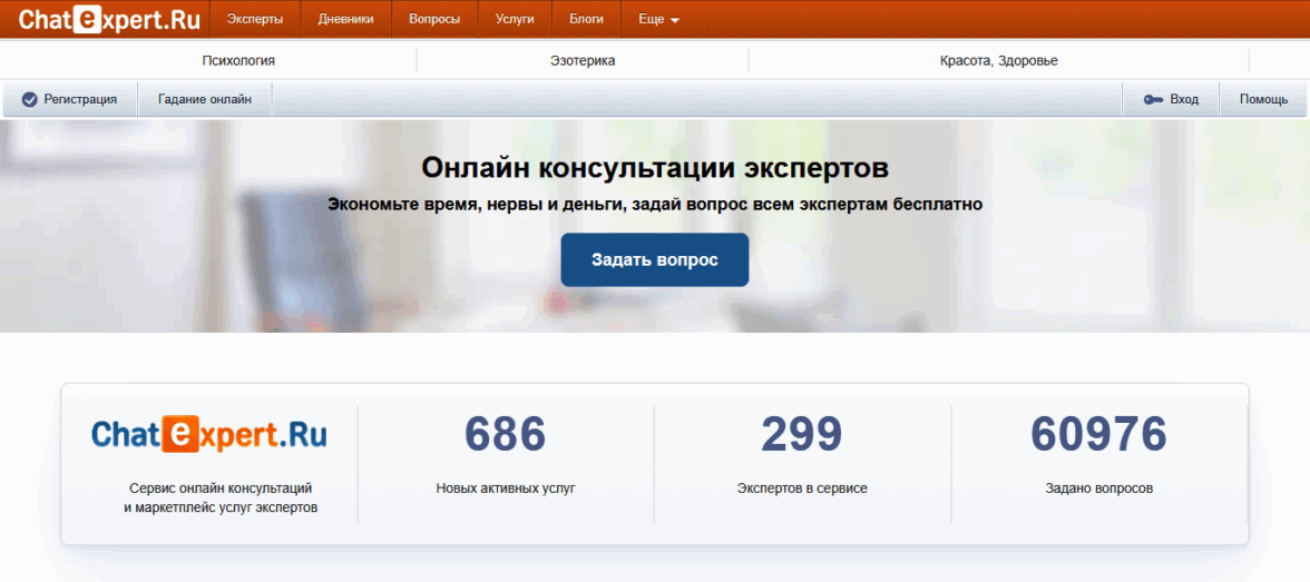 Chatexpert — текстовый чат, ответ до двух минут, функция проверки ответа вторым медиумом.
